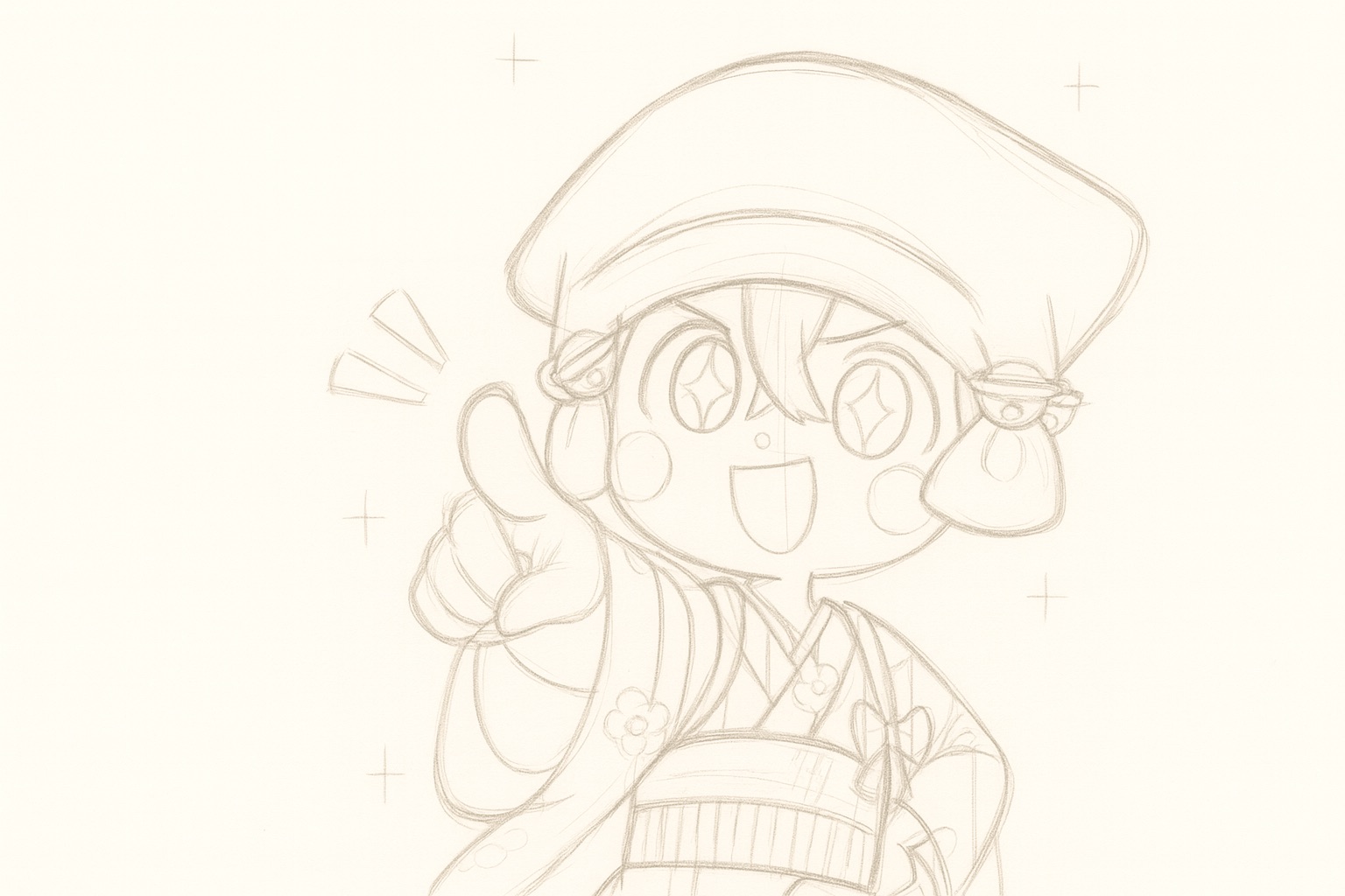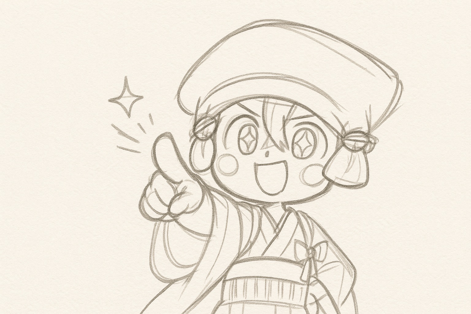 それでは、私のオリジナルキャラクター「頭巾ちゃん」を例にしながら「①ラフ → ②下書き → ③線画」の3ステップの描き方を徹底解説します。