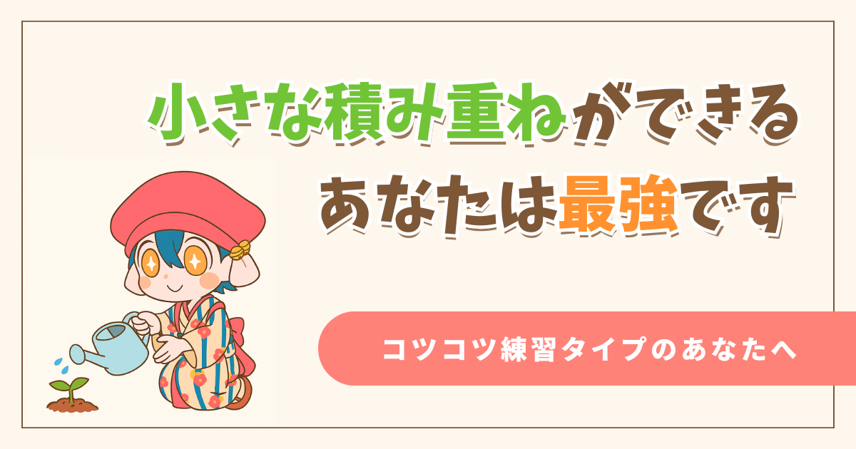 積み上げた日々はあなたを裏切らず、気づいたその瞬間、「あ、私…上手くなってる」と静かに確信できる未来が訪れます。それは、派手な天才が味わえない、コツコツ型だけの特権です。