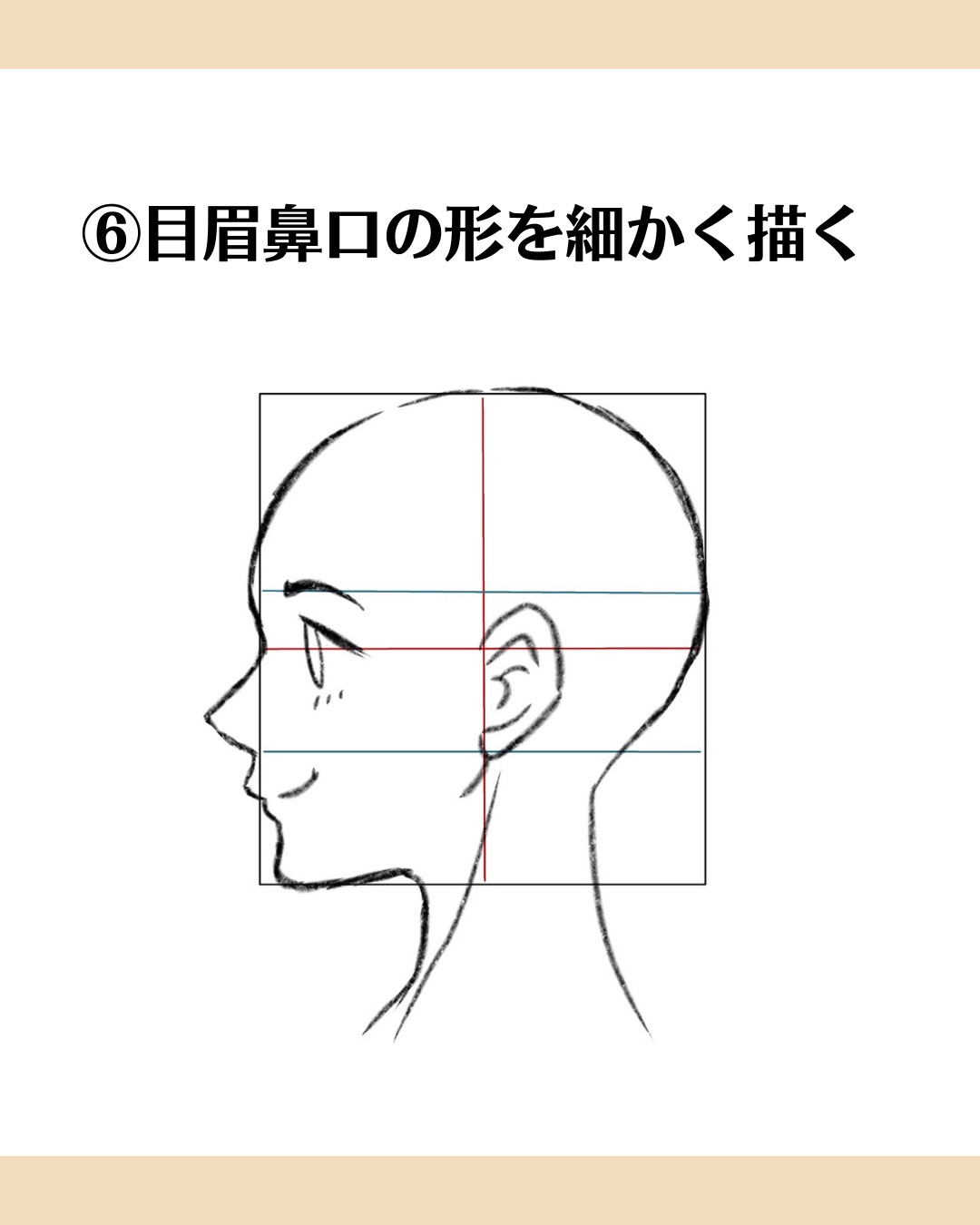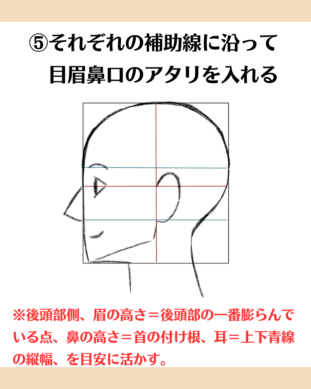 ③ さらに補助線を追加(眉と鼻の位置)